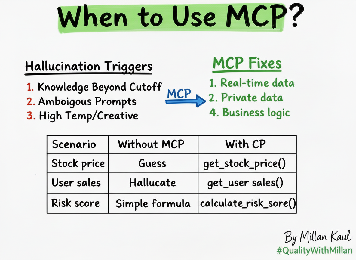 MCP doesn’t fix hallucinations. It makes them impossible by forcing LLMs to call your code instead of guessing.